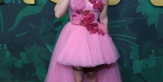 Одним из самых популярных образов на церемонии награждения "Эмми" были платья с цветочным принтом. Однако не всем знаменитостям удалось удачно воспользоваться трендом и восхитить поклонников. Среди них оказалась звезда сериала "Теория большого взрыва" Кейли Куоку, которая выбрала для выхода в свет розовый наряд Dolce & Gabbana, напоминавший огромный праздничный торт из прошлого. Ассиметричное фатиновое платье с нашитыми розами было чересчур объемным, а Кейли Куоку выглядела в нем нелепо, будто она одолжила сценический наряд у певицы Кетти Пэрри.
