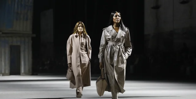 Ветераны индустрии одновременно вышли на подиум, чтобы представить образы коллекции весна/лето 2023. Наоми Кэмпбелл сияла в сером тренче в сочетании со слайдами с животным принтом, а французско-итальянская модель и певица Карла Бруни надела соответствующий бежевый костюм и пальто в тон основного наряда, дополнив образ светлой сумкой.