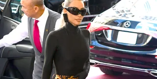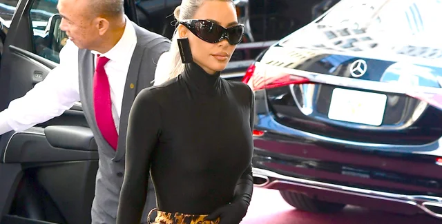 На шоу, к слову, Ким Кардашьян появилась в шикарном образе от Balenciaga: топе, ярких брюках с тигровым принтом и ботильонах в тон. А образ она дополнила серьгами от этого же бренда в виде кредитных карт.