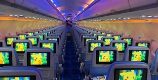 Кроме того, что его разрисовали снаружи, внутри все сделано в стили легендарного мультфильма: наволочки, стюардессы в форме пикачу, еда как из сериала.