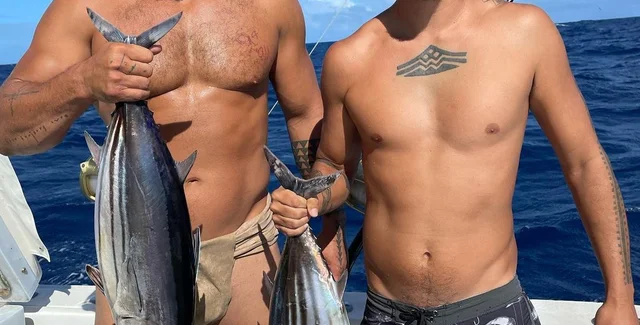 Джейсон Момоа опубликовал очень откровенное видео и фото в Instagram, похваставшись уловом полосатого тунца. Оказалось, что на рыбалку актер отправился в традиционной гавайской набедренной повязке.