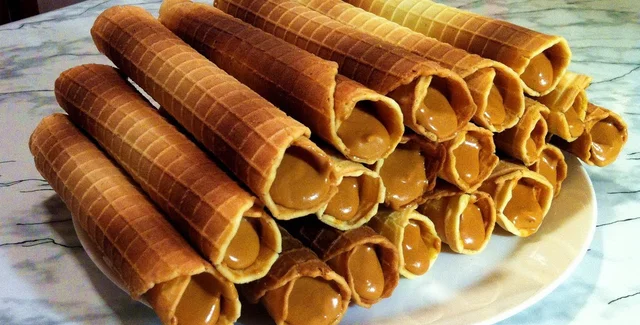Вафельные трубочки можно начинить варенной сгущенкой или заварным кремом.