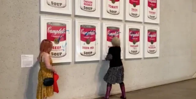 Климатические активисты из движения Stop Fossil Fuel Subsidies, выступающие против газовой, нефтяной и угольной отраслей и пытающиеся привлечь внимание к климатическим проблемам, приклеились к картине Энди Уорхола "Банки с супом "Кэмпбелл"" в Национальной художественной галерее Австралии в Канберре, сообщает Reuters.