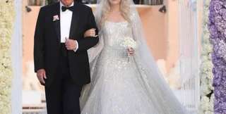 Тиффани продемонстрировала потрясающее свадебное платье, расшитое блестками и бисером от Elie Saab.