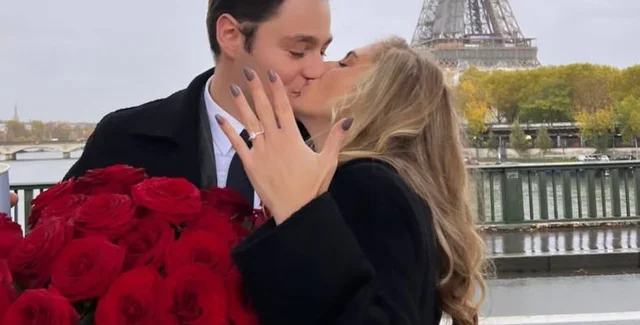 Судя по фото, сын миллиардера сделал предложение своей девушке в самом романтическом городе мира – в Париже, на фоне Эйфелевой башни.