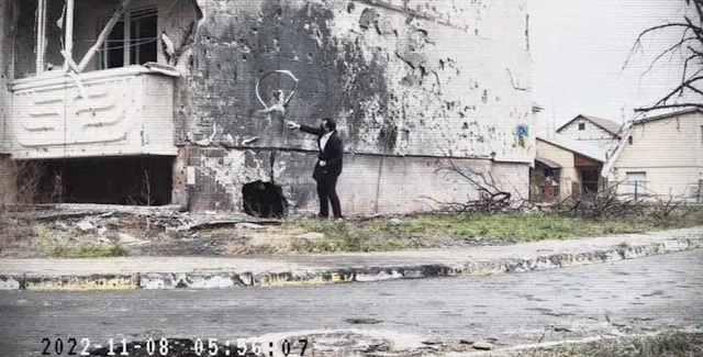 Видео, на котором якобы Бэнкси рисует граффити в Ирпене
