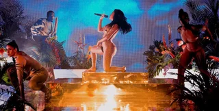 Бэк-вокалистки артистки были одеты в такие же полупрозрачные трико.