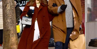 На днях девушка дала несколько интервью в Нью-Йорке, а утром, перед началом длинного дня, она вышла на небольшую прогулку за кофе вместе с мужем.