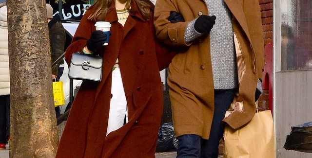 Супруг Лили был одет в похожем с ней стиле, поскольку сочетал пальто цвета кэмел с джинсами, кроссовками и серо-белым вязаным свитером. На нем тоже были шапка и перчатки.