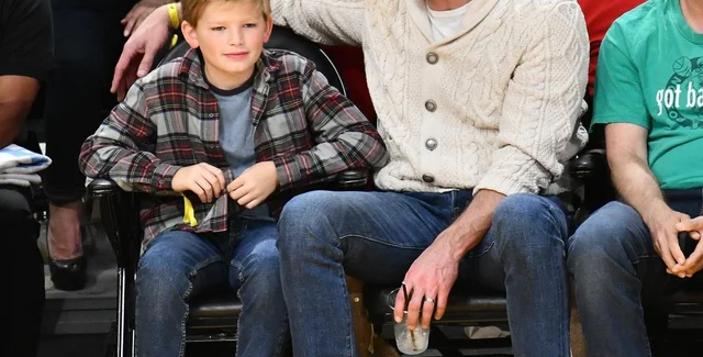 Знаменитость был одет в джинсы, белую футболку и бежевый вязаный кардиган, а вот 10-летний Сэмюэл — в серую футболку, джинсы и клетчатую рубашку.