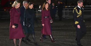 40-летняя принцесса Уэльская задает модные тренды не только своим поклонникам, но и, похоже, всей королевской семье. На записи рождественского концерта, которая состоялась в Вестминстерском аббатстве, Ее Королевское Высочество появилась в бордовом пальто Eponine London, подобрав к нему в тон клатч и туфли, и точно такой же винный оттенок выбрали еще несколько представительниц монаршего семейства.