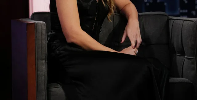 Для съемок актриса надела шикарное черное шелковое платье с вырезом и шнуровкой в зоне декольте от бренда Alessandra Rich. Свой образ звезда "Волк с Уолл-стрит" дополнила босоножками со стразами и лаконичными украшениями и макияжем с красной помадой на губах.