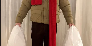На новогодний корпоратив своего предприятия Жакмюс пришел в зимней куртке, красном ярком шарфе и черных брюках. На голове дизайнера была шапка с помпоном. А главной деталью образа стали пакеты с выпавшими продуктами, как это было в оригинале фильма с героем Маколея Калкина.