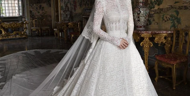 Для трехдневной свадьбы D&G создали пять различных моделей, в том числе потрясающее кружевное платье в викторианском стиле, которое она носила на самой церемонии.