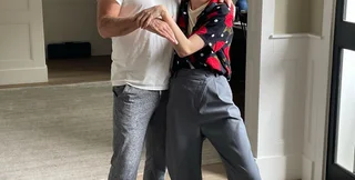 Во время съемки актер делает смешное лицо, а Таллула широко улыбается и держит его за руку. На втором снимке оба кривляются.
