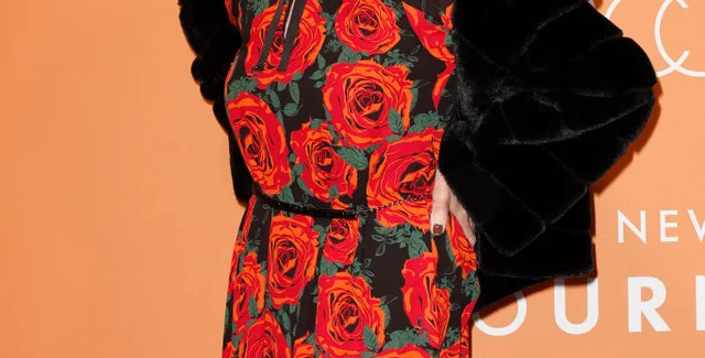 Для светского выхода Маск выбрала черное платье до колен с принтом в виде крупных красных роз, изделие включало драпированные рукава с лифом в виде замочной скважины и слегка присборенным вырезом. На шее у нее была черная атласная лента, а на талии – черный тонкий ремешок.