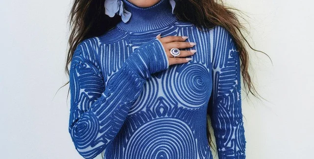 На еще одной из фотографий со съемок Приянка была одета в обтягивающее синее платье-футляр с вышивкой Off-White и кольцом Bulgari, а на другой фотографии она была изображена в другом потрясающем синем платье, которое было с многочисленными вырезами.