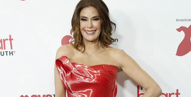 Тери Хэтчер посетила концерт Американской ассоциации кардиологов "Go Red For Women" в Нью-Йорке в платье от Rubin Singer.