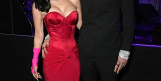 Актриса сияла в ослепительном белом платье с украшениями от Lorraine Schwartz. Ее возлюбленный рассказывал, что в своем блестящем серебристом костюме и соответствующих ботинках он продемонстрировал "феникса, восстающего из пепла".