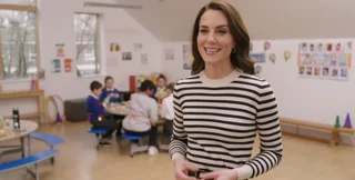Кейт Миддлтон в модном полосатом свитере провела встречу со школьниками