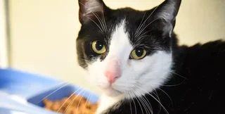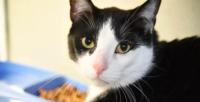 Черно-белый кот был очень шокирован, попав в приют. Он сидел в переноске, отказывался от еды и даже не мурлыкал.