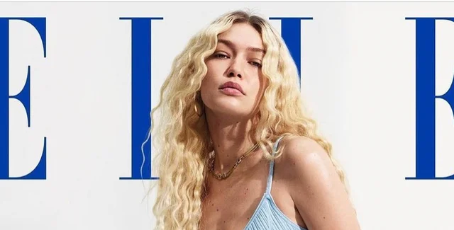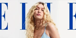 На свежей обложке Elle США старшая сестра Беллы Хадид предстала в образе синего кролика. Она примеряла мохнатый темно-синий топ с длинными рукавами и шапочкой с ушками кролика и ультракороткие шорты из такого же материала.