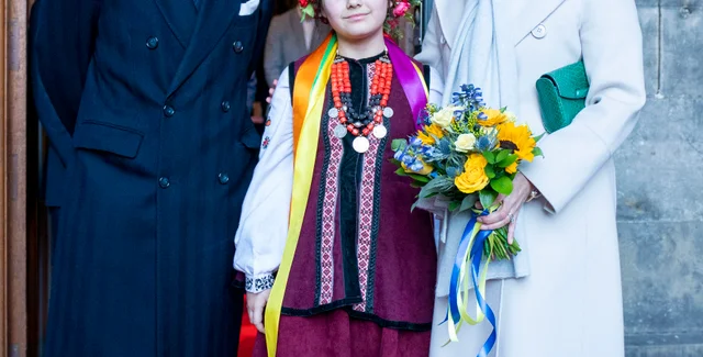 Королевская чета была представлена 10-летней Марианне Мельник из Украины, которая подарила Софи букет из желтых и синих цветов — цветов ее национального флага.