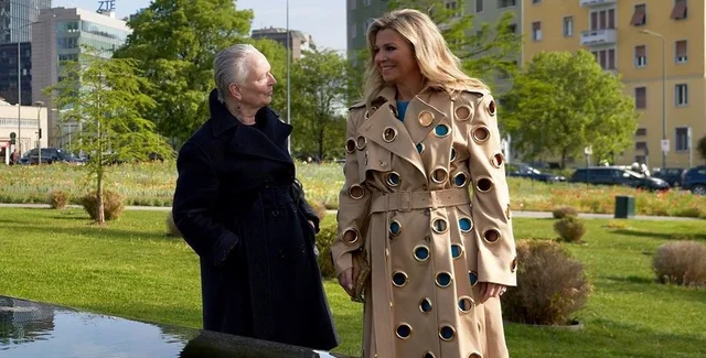Королевская особа сфотографировалась с Петрой Блез, архитектором Parco della Musica, и Стефано Боэри, дизайнером небоскреба Bosco Verticale.