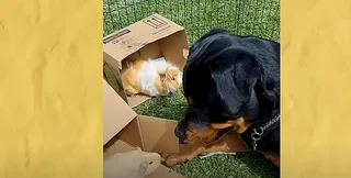 Ротвейлер Мейша стала героиней Сети, после того, как в интернете появился видеоролик с собакой, ставшей приемной мамой для морских свинок. Таким образом животное спасается от одиночества, пока ее хозяева на работе, пишет ресурс I heart dogs.