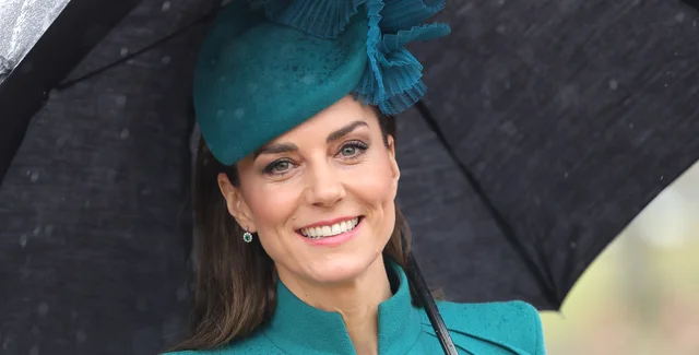 В марте 2023 года принцесса Уэльская Кэтрин впервые в качестве полковника полка посетила 1-й батальон ирландской гвардии на равнине Солсбери, чтобы отпраздновать День Святого Патрика в рамках ежегодного парада. На мероприятии многодетная мать появилась в очень стильном образе. Она надела зеленое пальто цвета морской волны с обтекаемым силуэтом, жестким воротником, поясом на талии, длинными рукавами и гладкими лацканами от Catherine Walker, дополнив ансамбль золотой брошью в форме трилистника, которую одалживали королевским дамам, связанным с полком, парой изумрудных серег, инкрустированных бриллиантами, шляпкой от Jane Taylor Millinery и туфлями на шпильке в тон от Emmy London.