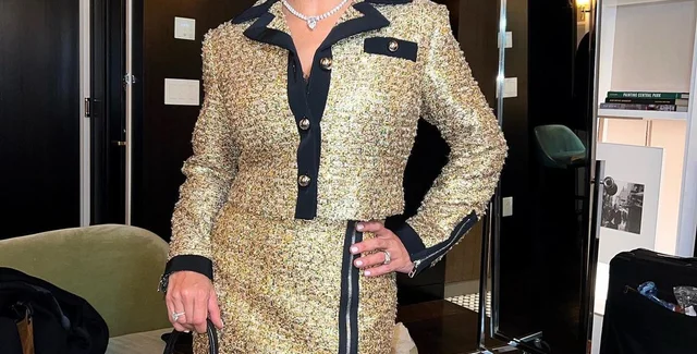 Cальма Хайек в золотом твидовом костюме посетила вечеринку Gucci