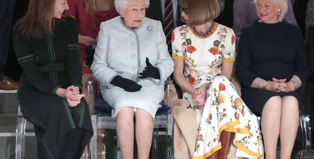 Анджела Келли и королева Елизавета на модном показе | Фото: Getty Images
