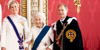 86-летняя принцесса Александра, леди Огилви, была подружкой невесты на свадьбе королевы Елизаветы в 1947 году и долгое время оставалась ее близкой подругой. На фото 86-летняя принцесса Александра стоит между принцем Эдвардом и его женой Софи, герцогом и герцогиней Эдинбургскими, которые поддерживали ее под руки.