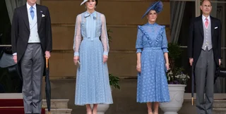 Герцогиня Софи также решила обратиться за вдохновением к прошлому и выбрала голубое платье от Suzannah, которое она также надевала ранее на скачки Royal Ascot в 2022 году. Дресс-код скачек и вечеринки в саду Букингемского дворца предполагает платье длиной ниже колена и шляпку, так что наряд идеально подошел.