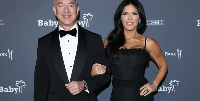 Санчес надела шикарный черно-белый джемпер, белые брюки и дополнила ансамбль красной сумочкой. В своб очередь Безос был в полностью черном костюме и очках-авиаторах.
