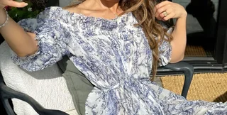 Что касается образа, то актриса была одета в расклешенные синие джинсы и фиолетовый топ без рукавов. Свои волосы типичного медового оттенка она скрыла под объемным темным париком с длинными локонами.