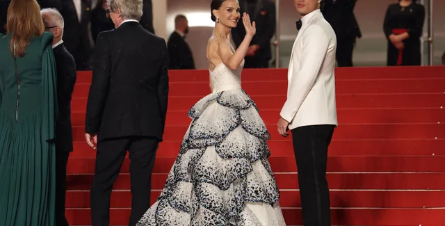 Украшенное драгоценностями платье, которое Натали Портман надела на премьеру своего последнего фильма, было вдохновлено произведением, достойным музея. Платье без бретелек цвета слоновой кости имело объемную юбку с лепестками с синими камнями.