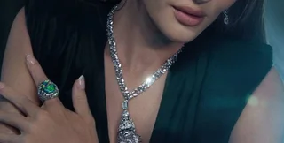 В ролике она демонстрирует украшения из коллекции высокого ювелирного искусства Tiffany & Co Blue Book 2023: Out of the Blue. Как известно, коллекция посвящена ювелиру Жану Шлюмберже и воспевает его увлечением морскими существами. На ней – колье с большой раковинной, усыпанное бриллиантами, серьги и кольцо.