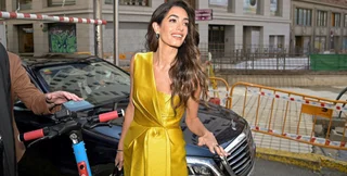 Миссис Клуни надела желтый атласный комбинезон с одним плечом. Он обрамлял ее изящную фигуру, подчеркивая женственность и изысканность. Уложив свои темные волосы в объемные волны, Амаль дополнила роскошный образ остроконечными бронзовыми туфлями на каблуке и небольшим клатчем. Браслет и подходящие сережки завершили образ знаменитости.