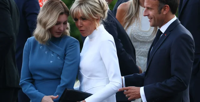 На ужине она вместе с мужем с удовольствием пообщалась с украинским президентом Владимиром Зеленским и его женой Еленой, которая пришла на мероприятие в платье сложного кроя от отечественного дизайнера Лилии Литковской. Также Брижит с Эммануэлем сфотографировалась с президентом Литвы Гитанасом Науседой и его женой Дианой.