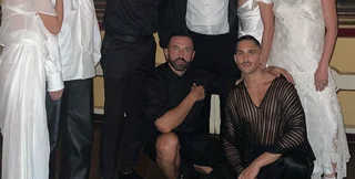 Дресс-код торжества был монохромным, и бывшая звезда обложки британского Vogue Ирина Шейк , близкая подруга дизайнера, выглядела как модная невеста в платье цвета слоновой кости от Вивьен Вествуд с топом-корсетом с открытыми плечами, который подчеркивал ее талию.