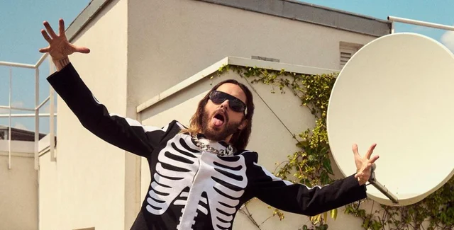 На первой странице Лето предстал в образе Кощея Бессмертного — в костюме с имитацией костей и черных солнцезащитных очках.