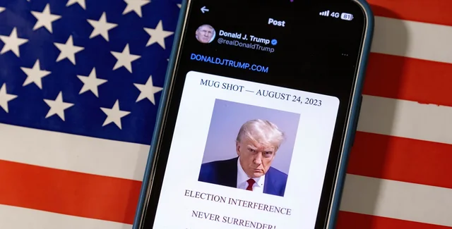 Трамп прибыл в тюрьму как обвиняемый в деле о вмешательстве в президентские выборы, где политика зарегистрировали как заключенного и сделали его снимок.