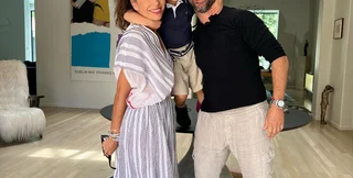 Супруг актрисы был в черном свитере, спортивных штанах в тон и черных кроссовках. Подол белой футболки выступал из-под свитера. Их сын, пятилетний Сантьяго, выглядел очаровательно в небесно-голубой рубашке и шортах.