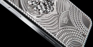 Корпус телефона выполнен из 18-каратного белого золота и инкрустирован 570 роскошными бриллиантами.