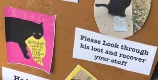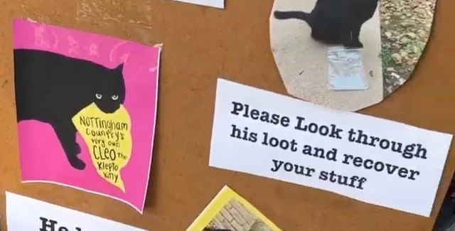 Клео принесла так много вещей, что Уит поставила во дворе своего дома стол и написала табличку, которая гласит: "Мой кошка — вор. Пожалуйста, просмотрите ее добычу и заберите свои вещи". Предварительно женщина постирала все находки пушистого клептомана.