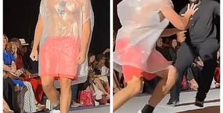 В Нью-Йорке проходит Неделя моды, которая не обошлась в этом году без казусов. Так, сеть облетело видео, где мужчина шагает по подиуму как модель. На нем – шапочка для душа и прозрачная накидка из пакета для мусора. Образ завершают оранжевые шорты, черные носки и белые кроссовки.