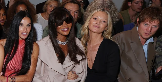 Впрочем, первый ряд занимали звезды не меньшей величины: актриса Деми Мур, модель Эмбер Валлетта, актрисы Кристина Риччи , Гвендолин Кристи и Наоми Уоттс, супермодель Линда Евангелиста , актриса Сьюки Уотерхаус и модель Кара Делевинь.