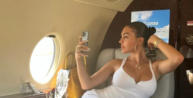 29-летняя испанская модель Джорджина Родригес показала снимки с борта частного самолета. Кадрами мама двоих детей делится в своем Instagram.