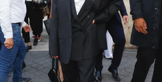 Памела надела черный брючный костюм-тройку в размере оверсайз. Под жилеткой виднелась белая рубашка, застегнутая на все пуговицы.